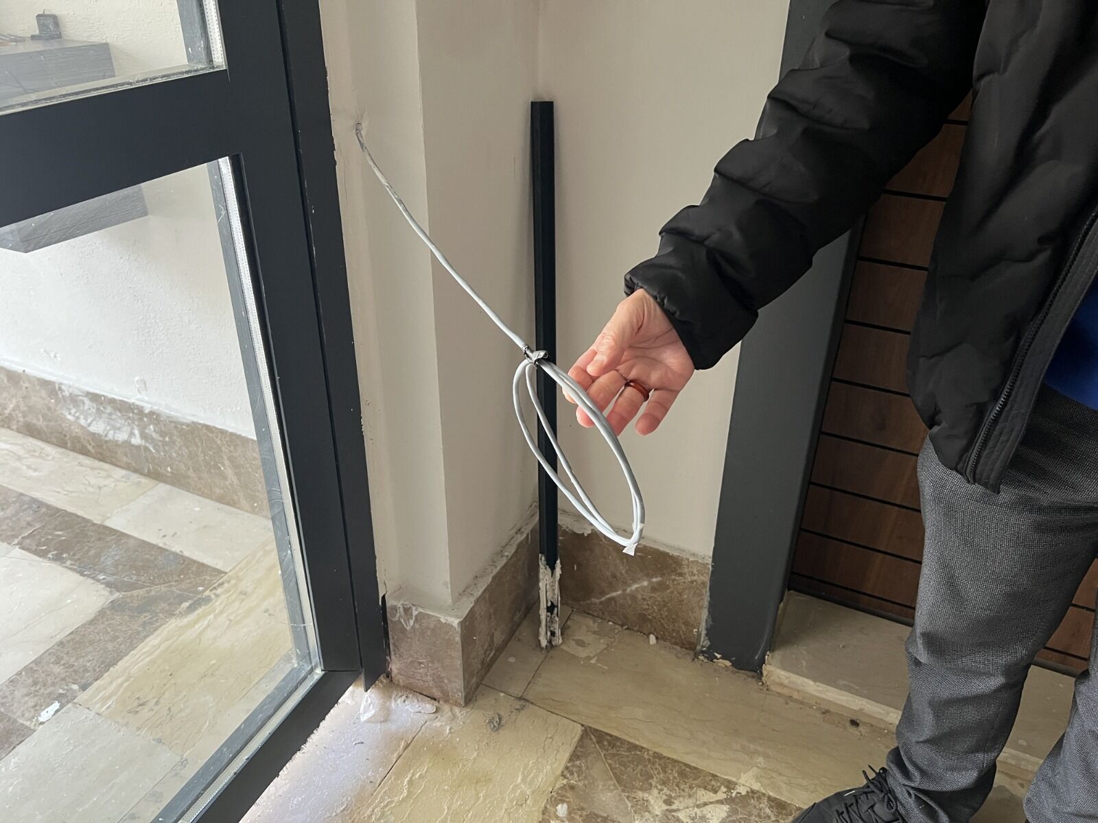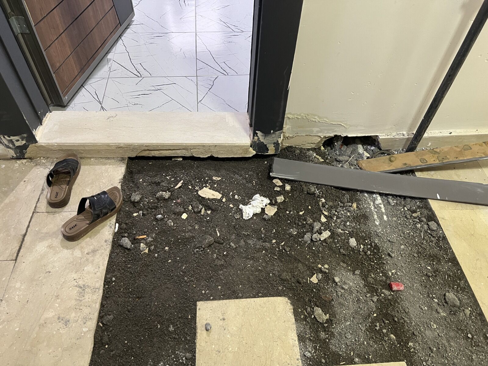 Artı kapı fitilleri kopuk parça. Süpürgelikler takılmamış. Takıldıysa yani bir tarafı takılmış, bir tarafı yapıştırılmamış gibi. İşte çeşmeler takılmış, lavaboda sallanıyor. Yani hiçbir şekilde sıkıştırılmamış.