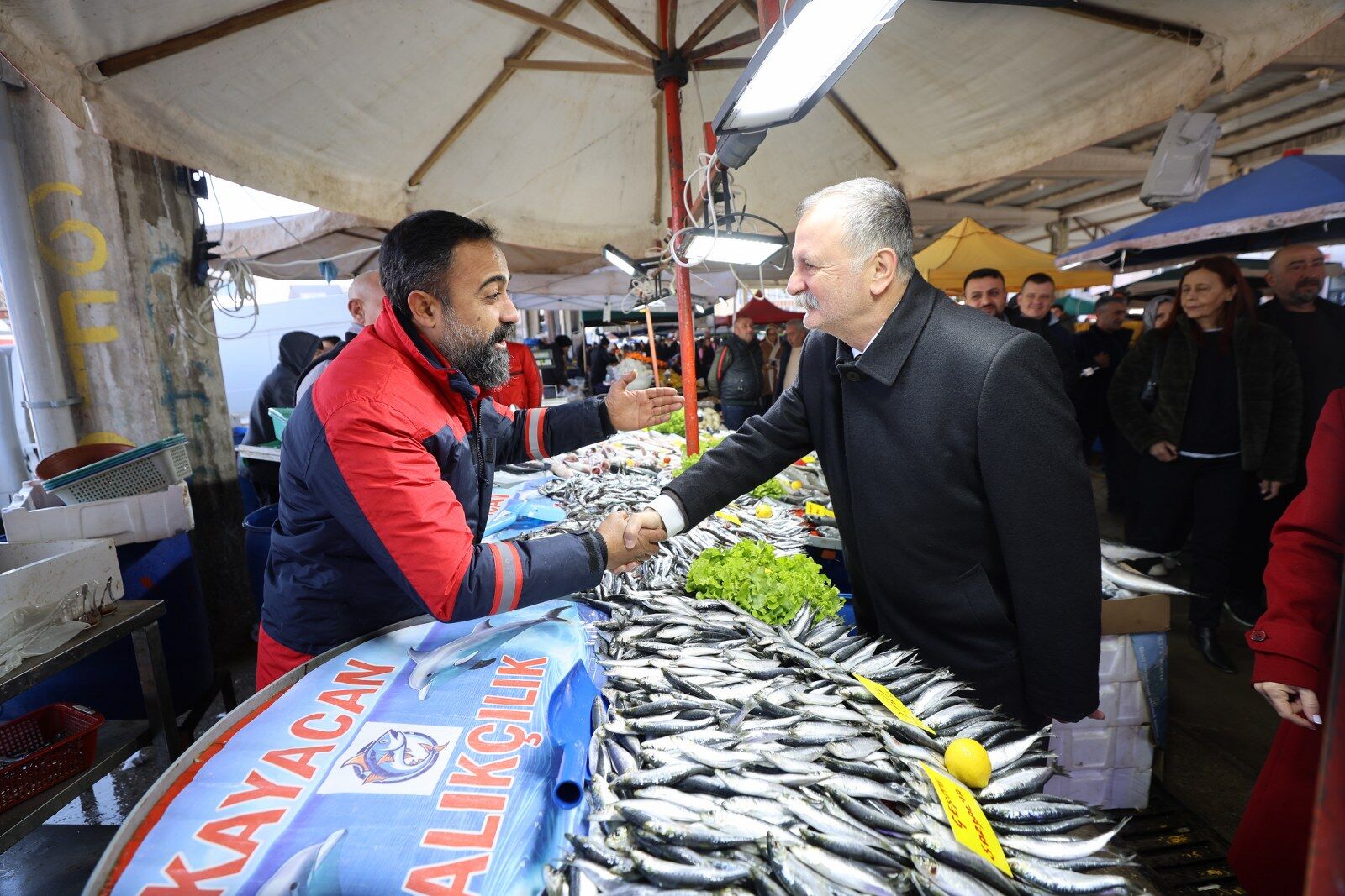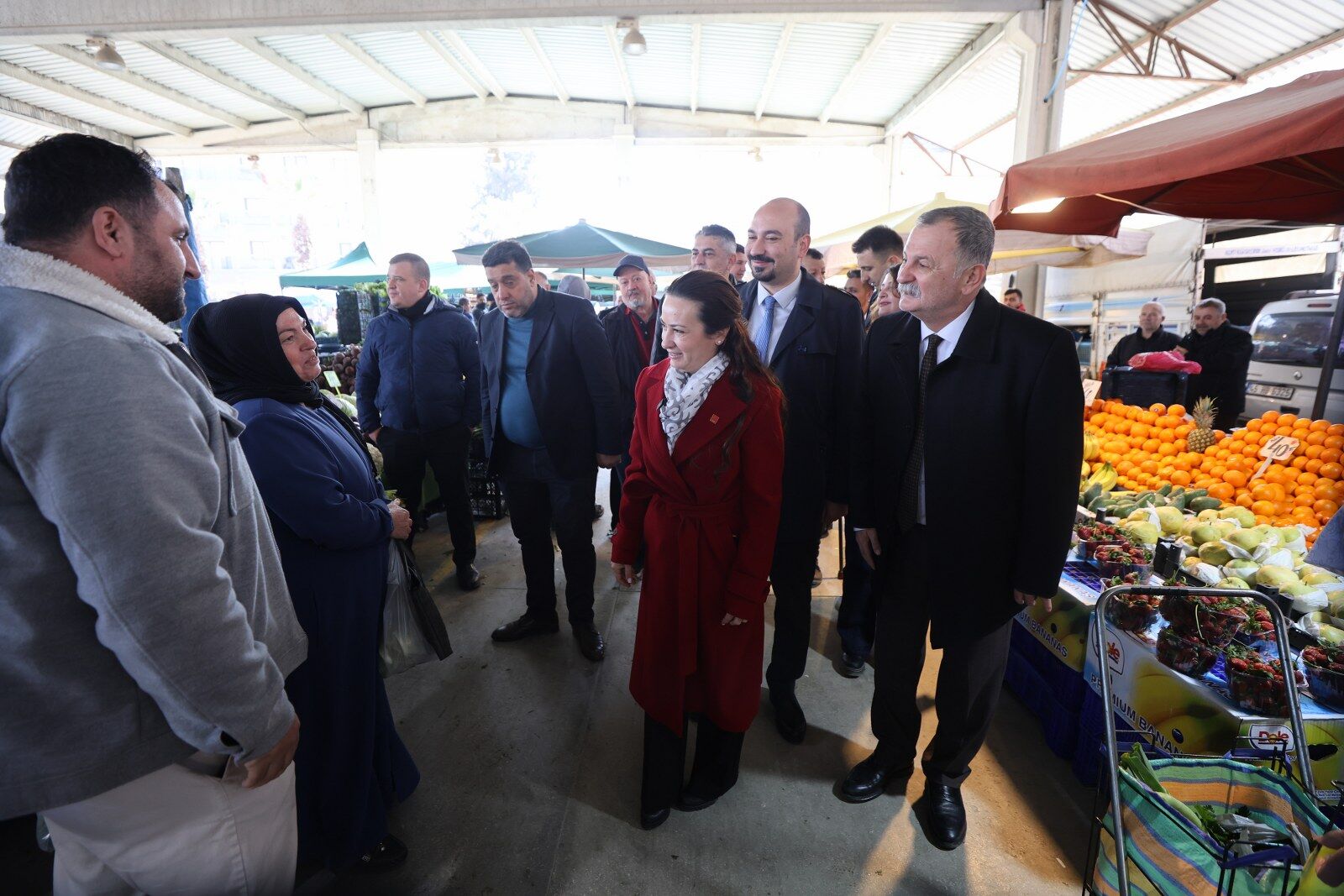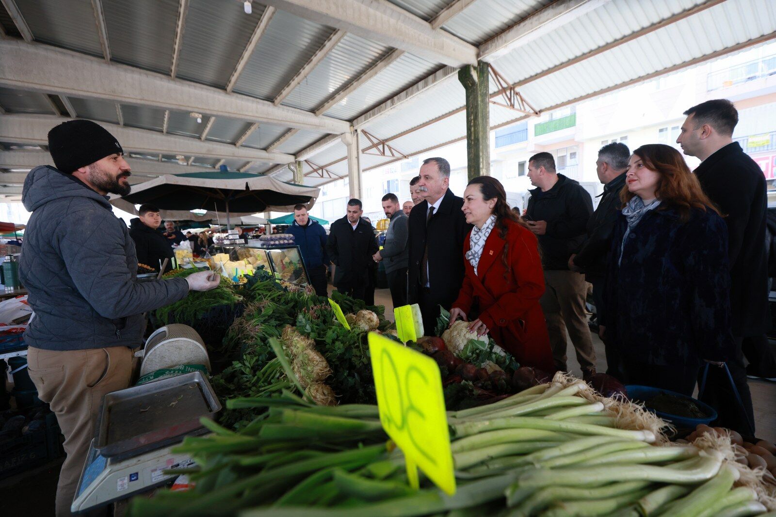 Yunusemre Belediye Başkanı Semih Balaban, CHP Manisa İl Başkanı İlksen Özalper ile birlikte Muradiye Mahallesi Pazar Yeri’nde tezgâh açan esnaf ve alışveriş yapan vatandaşlarla bir araya geldi. Pazar tezgâhlarını tek tek dolaşan Başkan Balaban ve İl Başkanı Özalper’e; CHP Yunusemre İlçe Başkanı Yalçın Arcak, Belediye Başkan Yardımcısı Emine Özge Arslan, belediye meclis üyeleri, Özel Kalem Müdürü Seyit Ali Özmen ve Muradiye Mahalle Muhtarı Eyüphan Aykıran da eşlik etti. Ziyaret kapsamında esnafın ve vatandaşların talep ve önerilerini dinleyen Başkan Balaban, iletilen konuların ilgili birimlere aktarılması için not alarak gerekli talimatları verdi.
