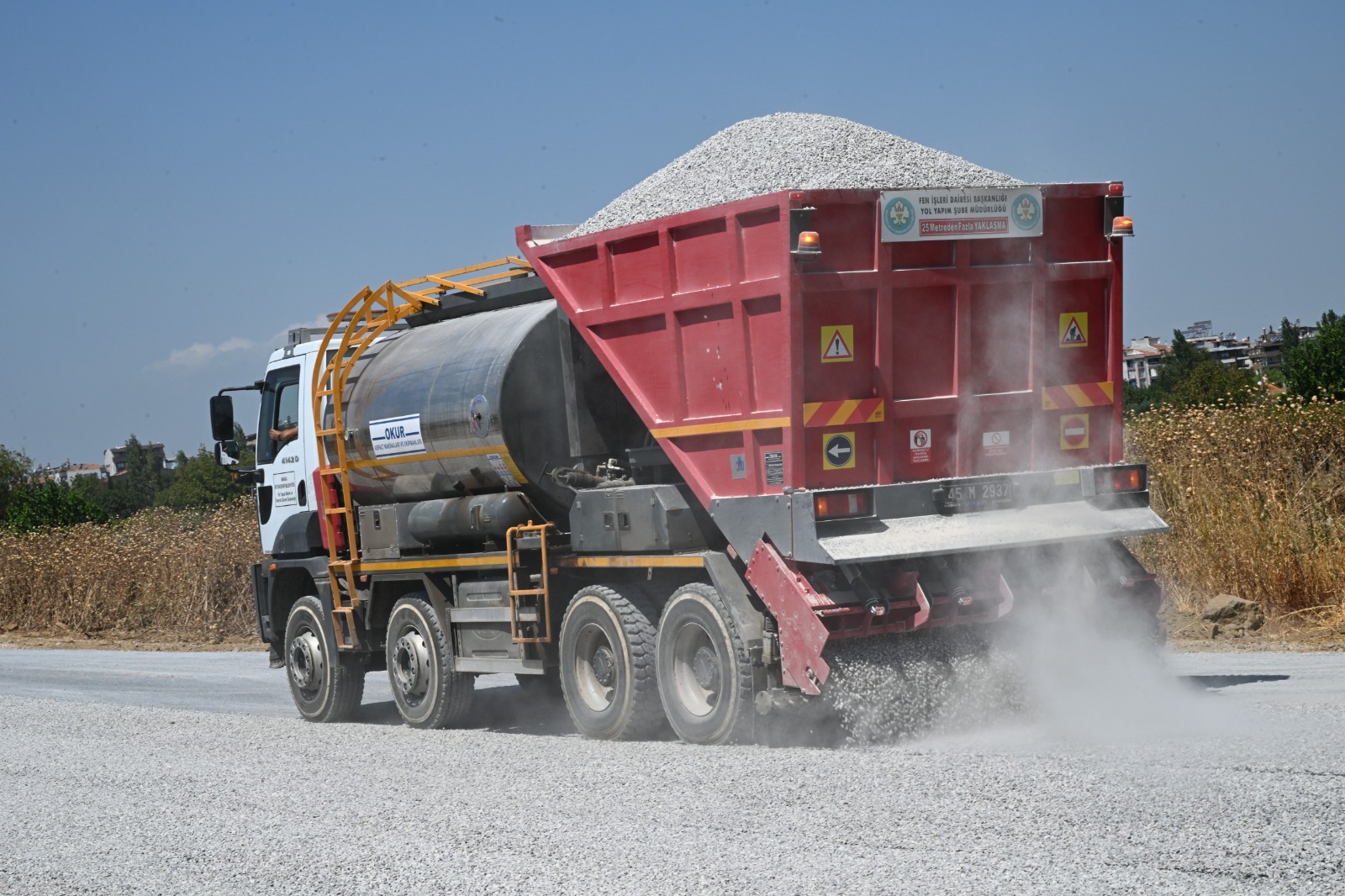 Manisa Büyükşehir Belediyesi, il genelinde ulaşım standartlarını yükseltmeye yönelik yatırımlarına aralıksız devam ediyor. Fen İşleri Dairesi Başkanlığı Yol Yapım Şube Müdürlüğü tarafından 2025 yılı çalışma programında hedeflenen 700 kilometre sathi kaplama çalışması tamamlandı. Yıl bitmeden hedefe ulaşan Manisa Büyükşehir Belediyesi, şantiyesinde ürettiği emülsiyon malzemesi ile tasarrufa sağlayarak dışa bağımlılığı ortadan kaldırdı. Hem maliyetlerde tasarruf sağlayan hem de kendi nakliye ile 17 ilçeye hizmet götüren Manisa Büyükşehir Belediyesi 5 milyon metrekarelik alanı sathi kaplama ile buluşturdu. İl merkezi ve 17 ilçede yürütülen çalışmalar kapsamında grup yolları, kırsal mahalle bağlantı yolları ve yoğun kullanılan güzergâhlarda yapılan yol çalışmaları ile hem trafik güvenliği arttırılmış oldu hem de vatandaşların ulaşım konforu sağlandı.