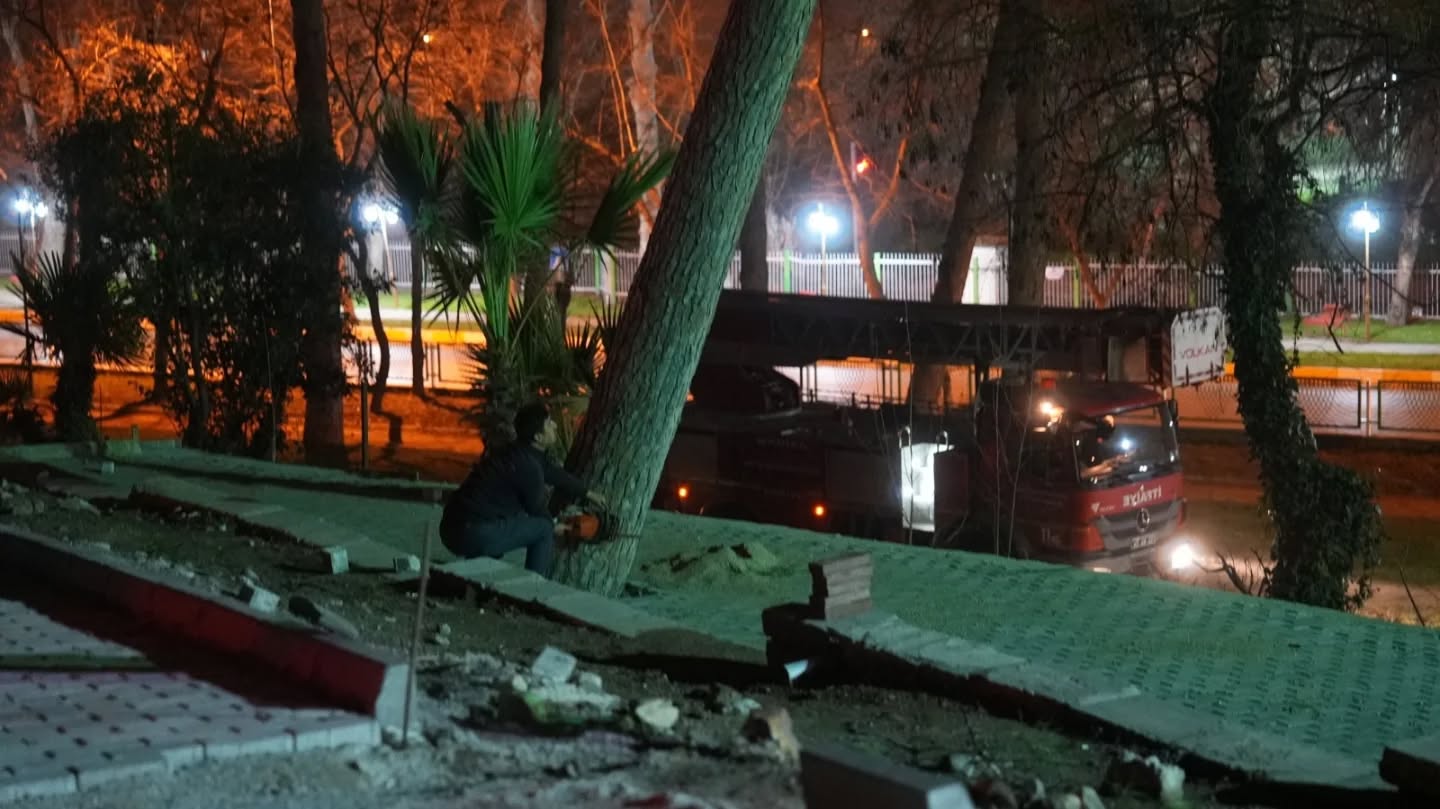 Dün akşam saatlerinde Manisa genelinde etkisini gösteren fırtına, özellikle Salihli’de çeşitli zarar ve olumsuzluklara neden oldu. İhbarlar üzerine belediye ekipleri hızla harekete geçerek devrilen ağaçlara ve hasar gören noktalara müdahale etti.