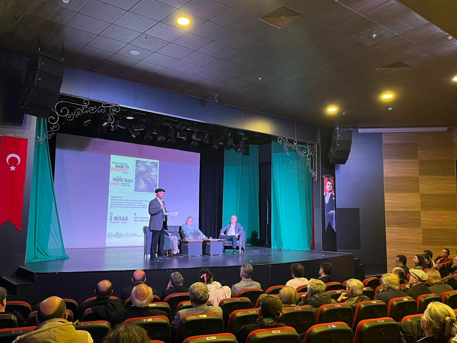 Manisa’da Gediz Nehri’nin korunmasına yönelik farkındalık oluşturmak amacıyla düzenlenen “Gediz’in Bitmeyen Kavgası” belgesel gösterimi ve ardından gerçekleştirilen “Hayat Suyu Gediz: Sorunlar ve Çözüm Yolları” konulu panel, bugün (2 Nisan Perşembe) saat 18.30’da Şehir Tiyatrosu Uğur Mumcu Sahnesi’nde gerçekleştirildi.