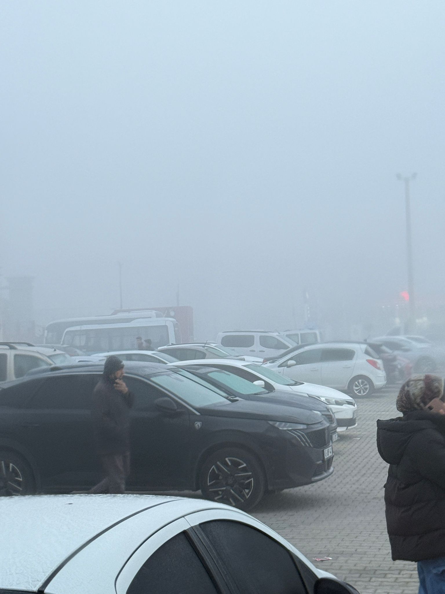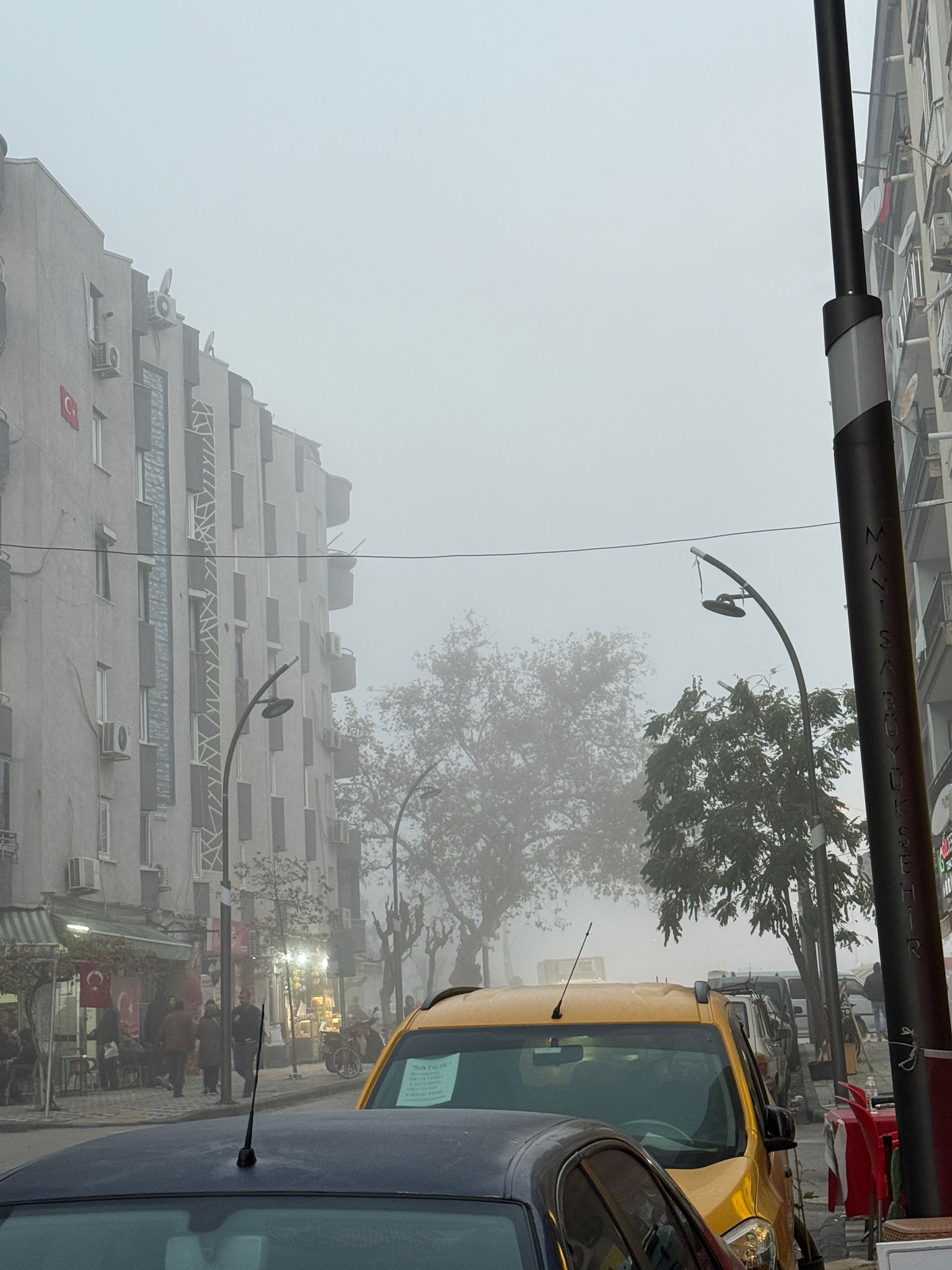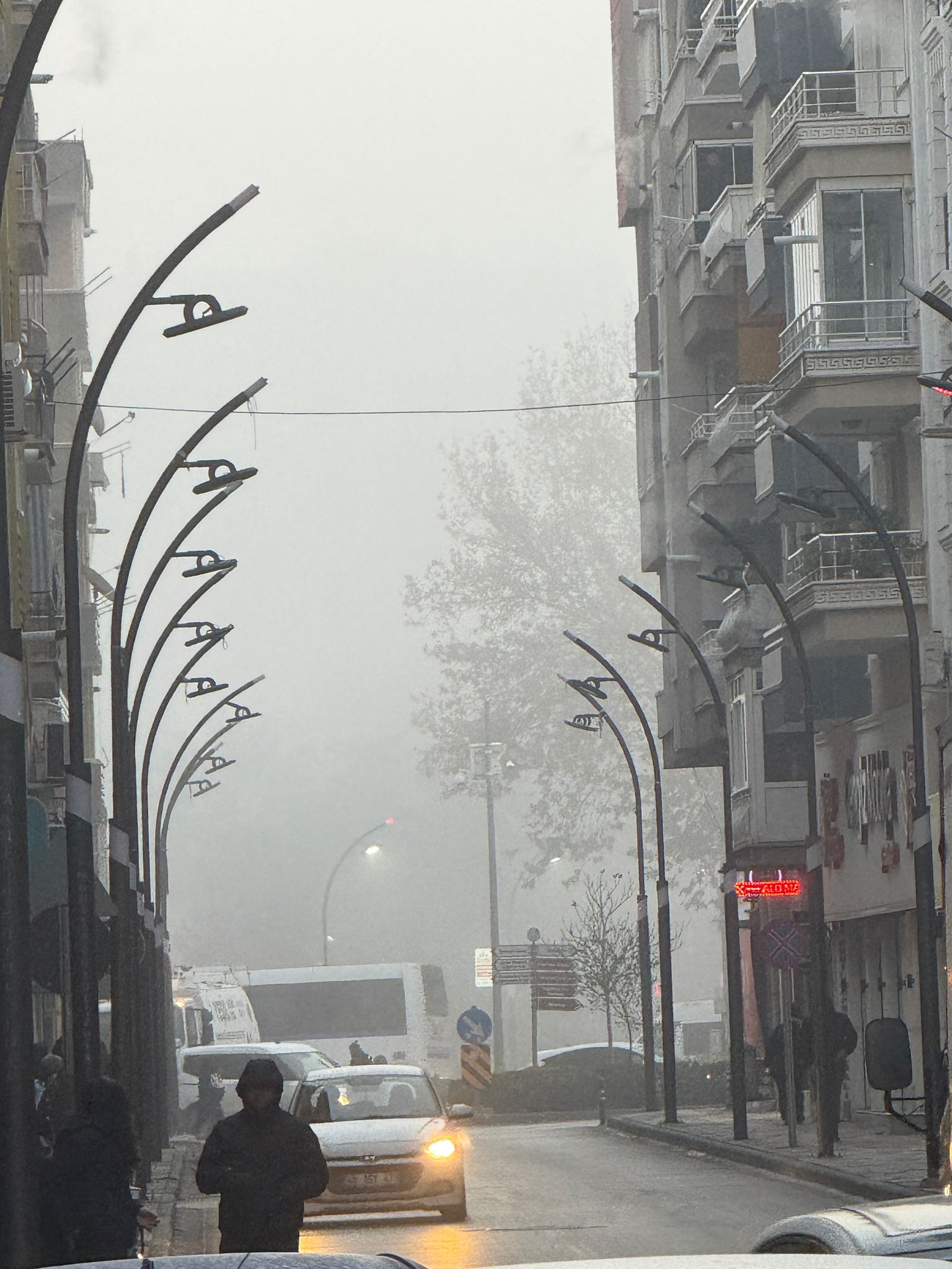 Sabahın erken saatlerinde sıcaklık 7 derece ölçüldü. Yüksek nem oranı ve hafif rüzgârla birlikte sis, özellikle ana yollarda etkisini daha fazla hissettirdi. Şehirde bazı noktalarda binalar ve araçlar neredeyse görünmez hâle geldi.