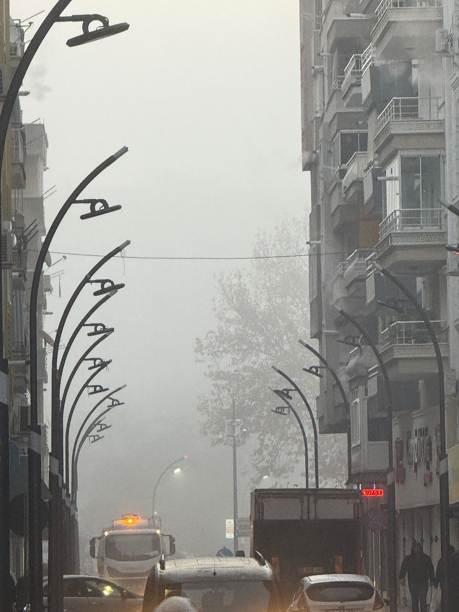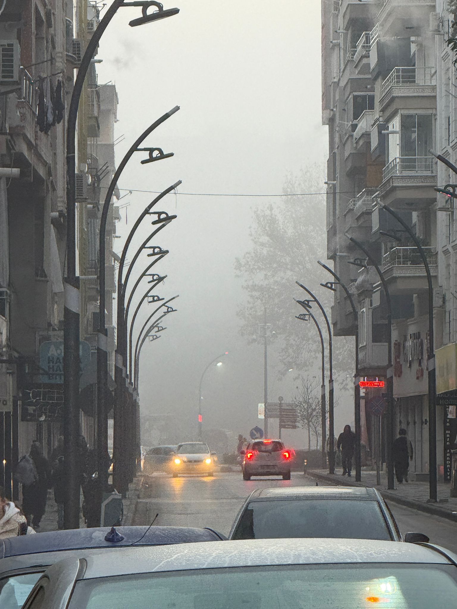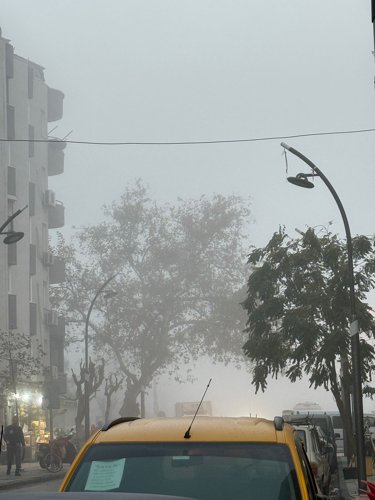Sabahın erken saatlerinde sıcaklık 7 derece ölçüldü. Yüksek nem oranı ve hafif rüzgârla birlikte sis, özellikle ana yollarda etkisini daha fazla hissettirdi. Şehirde bazı noktalarda binalar ve araçlar neredeyse görünmez hâle geldi.