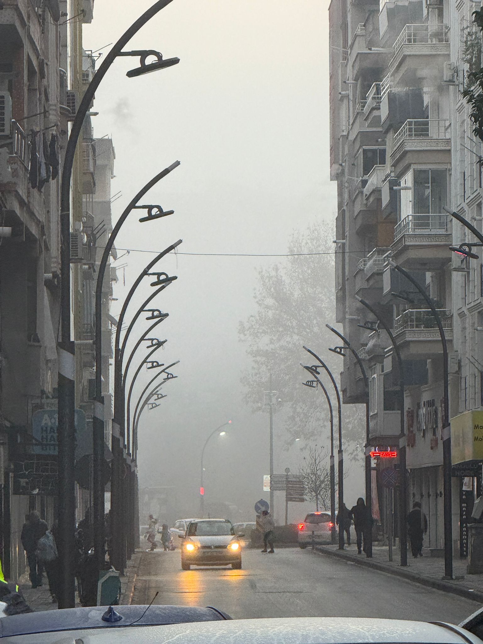 Kent merkezinde sabah saatlerinden itibaren görüş mesafesi belirgin şekilde azaldı. Trafiğe çıkan sürücüler, yoğun sis nedeniyle yavaş ilerlemek zorunda kaldı.