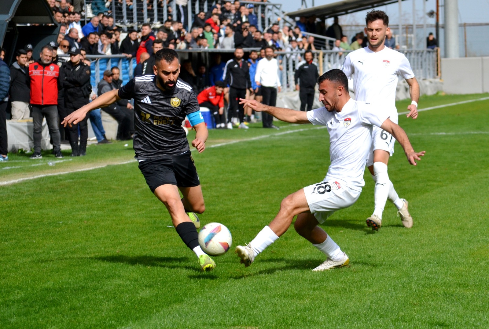 Golden sonra yeniden baskı kuran Manisaspor, 85. dakikada Şerif Ali Eğilmez’in ayağının içiyle kaydettiği golle bir kez daha öne geçti: 2-1.