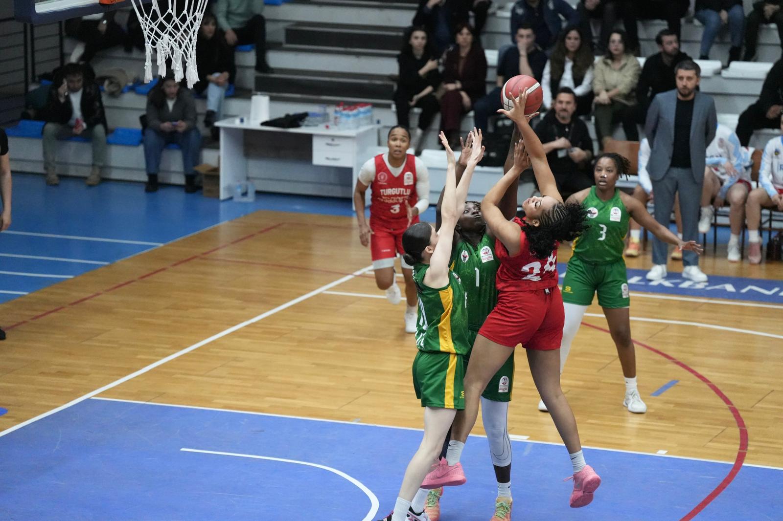 Halkbank Türkiye Kadınlar Basketbol Ligi’nin (TKBL) 20.haftasında Turgutlu Belediyesi Kadın Basketbol Takımı sahasında önemli bir galibiyete imza attı. Darıca Basketbol Feneri Takımına karşı oynayan Turgutlu Belediyespor ekibi maçın ilk dakikasından itibaren kontrolü ele aldı. Kırmızı siyahlılar birinci çeyrekte 14 sayılık fark yakalayarak üstünlüğünü ortaya koydu. İlk yarıyı 37-28 önde tamamlayan Turgutlu ekibi, etkili hücum ve savunmayla üçüncü çeyrekte hanesine 16 sayı ekledi. Son çeyrekte ise 23 sayılık katkı koyarak 76-57’lik skorla maça noktayı koydu. Manisa’nın ilk ve tek kadın basketbol takımı, kazandığı bu galibiyetle üçüncü sıraya yükselerek şampiyonluk iddiasını daha da güçlendirdi.
