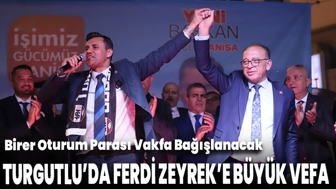 Haziran ayında geçirdiği elim bir kaza sonucu hayatını kaybeden Manisa Büyükşehir Belediye Başkanı merhum Ferdi Zeyrek adına kurulan vakfa destek kararı, Turgutlu Belediyesi Meclisi’nde geniş bir uzlaşıyla alındı. Başkan Akın, Cumhuriyet Halk Partili meclis üyelerinin tamamının yanı sıra Yeniden Refah Partili meclis üyesi ile AK Parti ve Milliyetçi Hareket Partili bazı meclis üyelerinin de bağışa destek verdiğini belirtti.