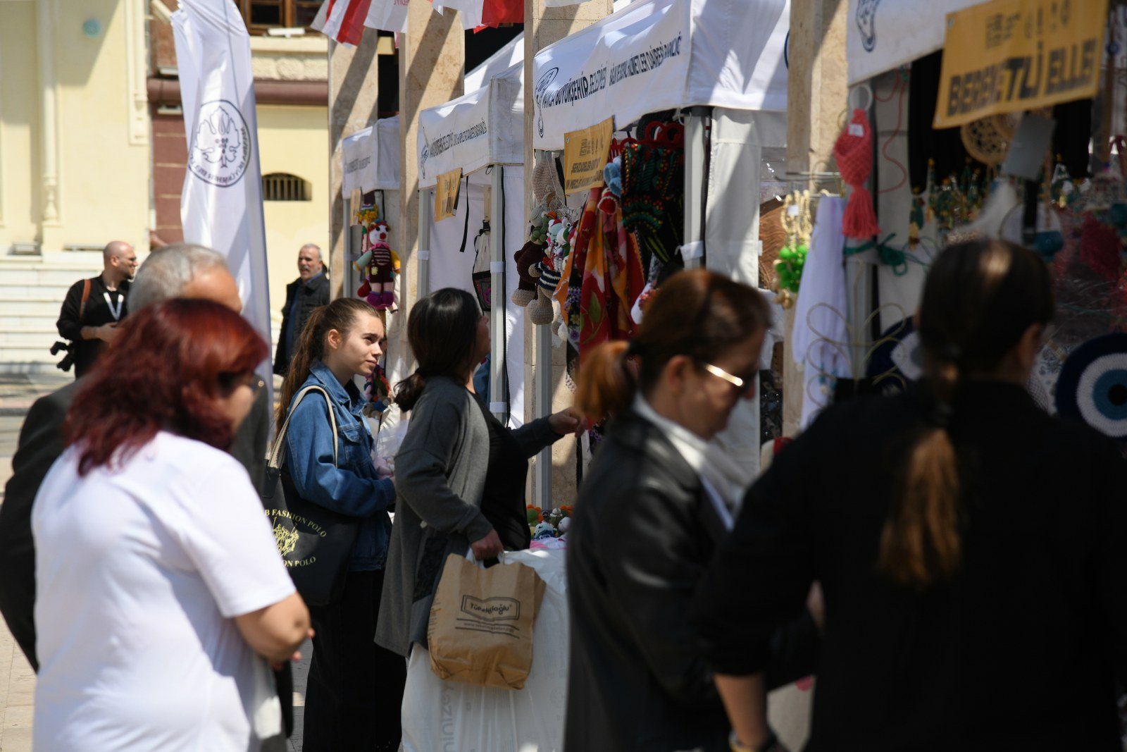 El emeği göz nuru eserler meraklılarını bekliyor. 486.’cı Uluslararası Manisa Mesir Macunu Festivali etkinlikleri kapsamında Manisa Büyükşehir Belediyesi, Yunusemre Belediyesi ve Şehzadeler Belediyesi iş birliği ile üreten kadınların eserleri mesir şenliklerine renk katıyor. Emekliler Parkı’nda kurulan stantlar ile el emeği eserler alıcılarının beğenisine sunuldu. Yunusemre Belediyesi bünyesinde hizmet veren 11 Kadın Dayanışma ve Eğitim Merkezi’nde eğitim gören kursiyerlerin el emeği göz nuru ürünleri festival süresince meraklılarının beğenisine sunulacak. Festivalin ilk gününde stantları Yunusemre Belediye Başkanı Semih Balaban ve Belediye Başkan Yardımcısı Emine Özge Arslan da ziyaret ederek kursiyerlere bol kazançlar diledi. Stantları tek tek gezen Başkan Balaban, üreten kadınların yanında olmaya devam edeceklerini belirtti.