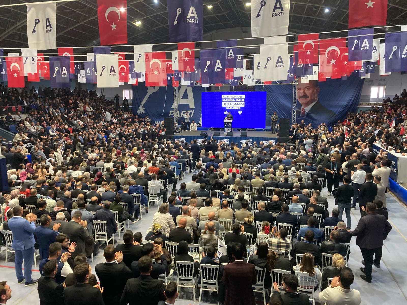 Anahtar Parti Genel Başkanı Yavuz Ağıralioğlu, Manisa’da gerçekleştirdiği bir dizi programın ardından basın mensuplarıyla buluştu. Kentteki temaslarını sürdüren Ağıralioğlu, basın toplantısının ardından Manisa Atatürk Kapalı Spor Salonu’nda düzenlenen “Halk Buluşması” etkinliğine katıldı. Atatürk Kapalı Spor Salonu’nda gerçekleştirilen buluşmada salonun büyük bölümünün dolduğu, vatandaşların programa yoğun katılım gösterdiği gözlendi. Ağıralioğlu, burada partililer ve vatandaşlarla bir araya gelerek gündeme dair değerlendirmelerde bulundu.