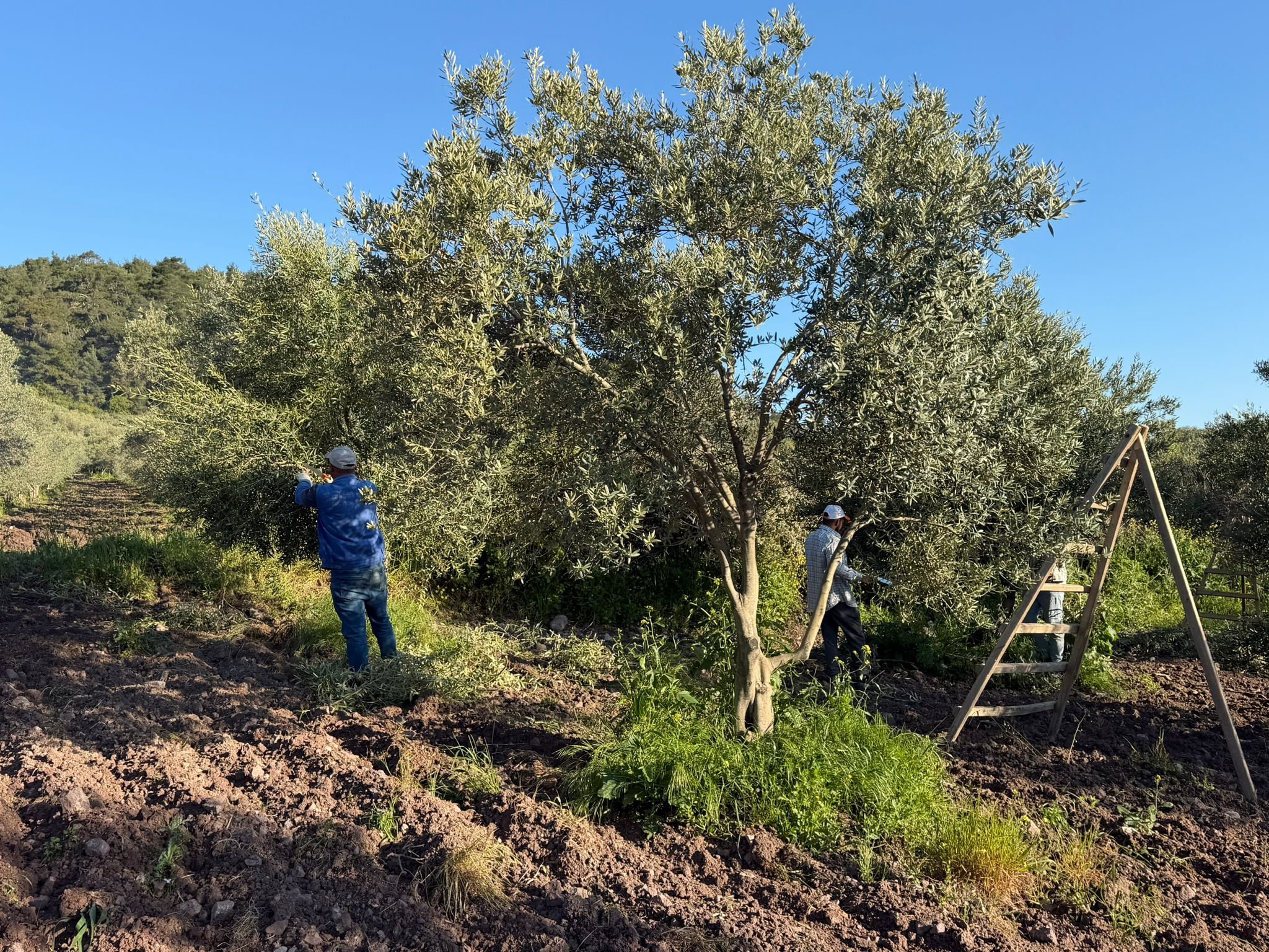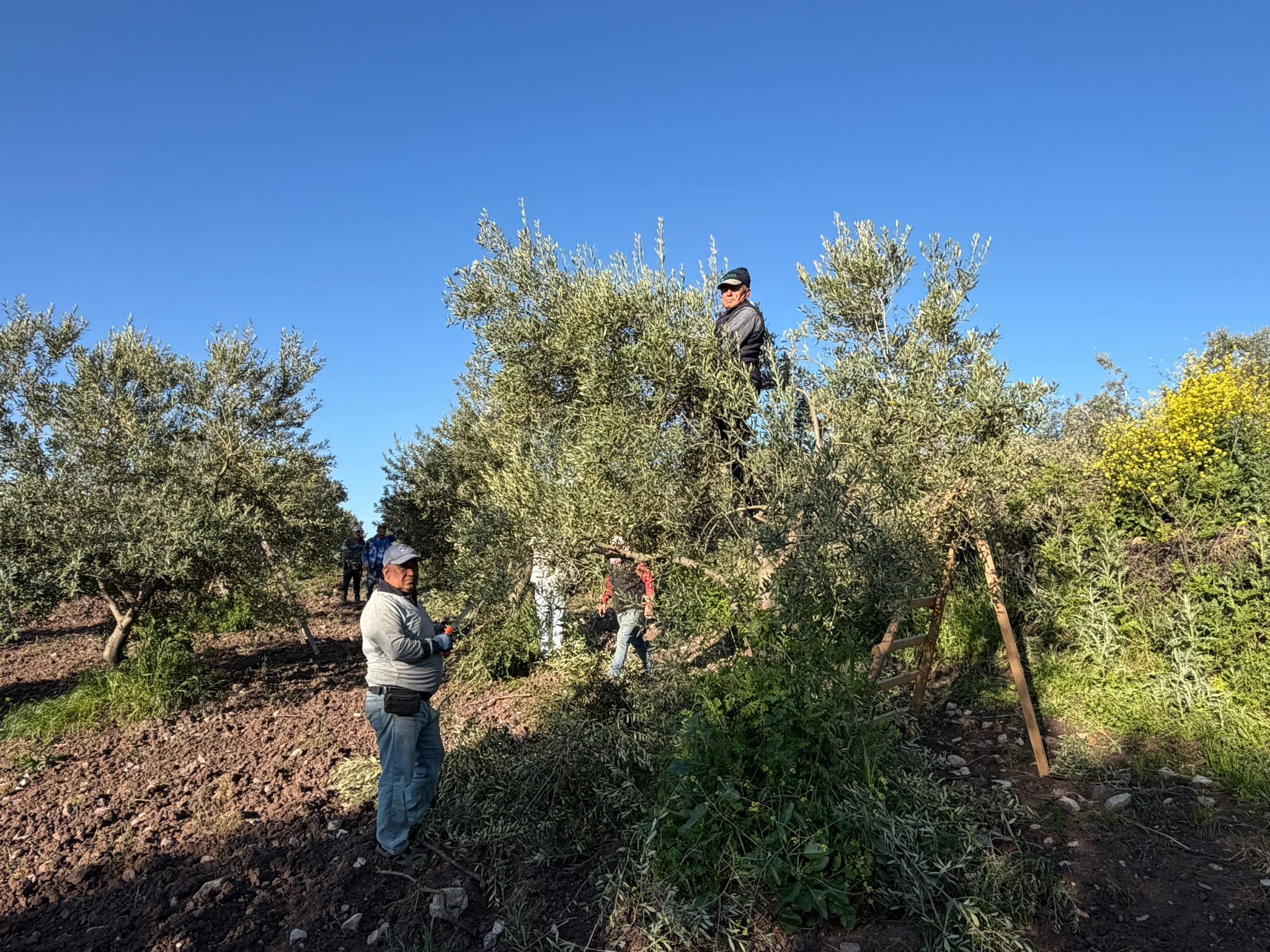 Deneyimli kadrosu ve titiz çalışmalarıyla öne çıkan ekip, zeytin ağaçlarının sağlıklı gelişimi ve yüksek verim elde edilmesi için yoğun mesai harcıyor.