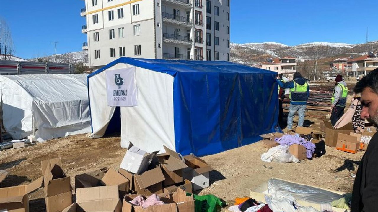 Bandırma Belediyesi, yıkıcı depremlerden sonra Adıyaman’da ortaya çıkan barınma ihtiyacına 150 adet büyük boy çadırla yanıt verdi.BALIKESİR (İGFA) - Bandırma Belediyesi, Kahramanmaraş'ta meydana gelen ve 10 ilde büyük yıkıma neden olan depremin ardından başlattığı yardım seferberliğini afet bölgesinde sürdürüyor.