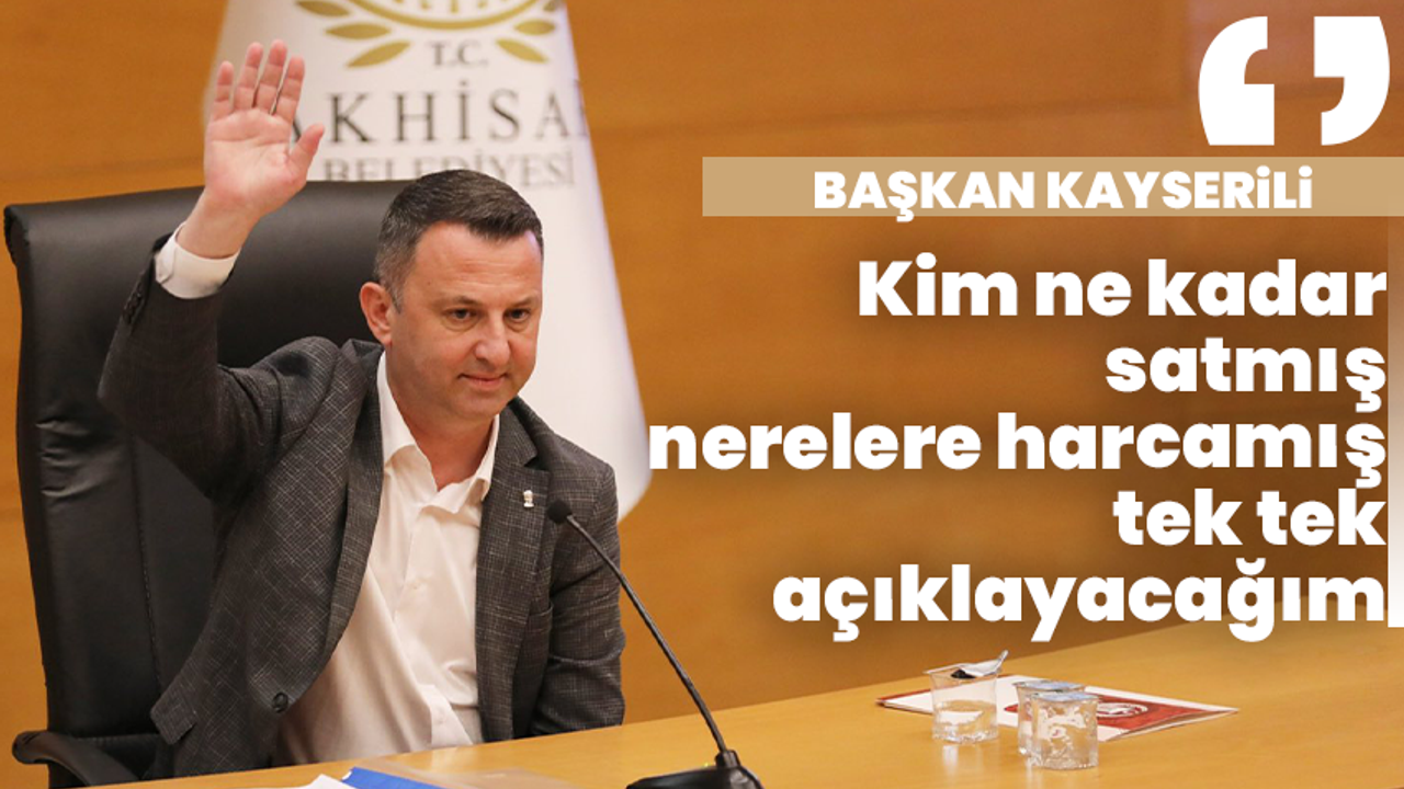 Kayserili açıklamasında, “Yaklaşık 20 yıldan beri kiralık olarak kullandığımız araçları satın aldık. Bu alınan her araç Akhisar’ın malı ve bütün kırsal mahallelerimize de zaten bu araçlar gidiyor. Ben size bizim göreve başladığımız günden bu güne kadar kaç yer satılmış, bunun karşılığında kaç lira gelir elde edilmiş ve neler yapılmış çıkartayım. Birde ben ne yapayım biliyor musunuz arkadaşlar, 2004 yılından 2019 yılına kadar Akhisar Belediyesi’nin neyi satılmış nerelere harcanmış onu da çıkartayım olur mu? Kim ne kadar satmış göreceksiniz ” ifadelerini kullandı.