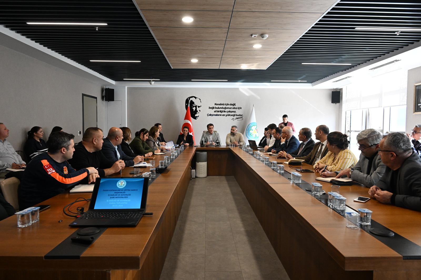 İnsan Kaynakları ve Eğitim Dairesi Başkanlığı koordinesinde düzenlenen toplantıya; Genel Sekreter Yardımcıları Ahmet Ata Temiz ve Erk Kayabaş’ın yanı sıra daire başkanları, şube müdürleri ve İSG temsilcileri katılım sağladı.