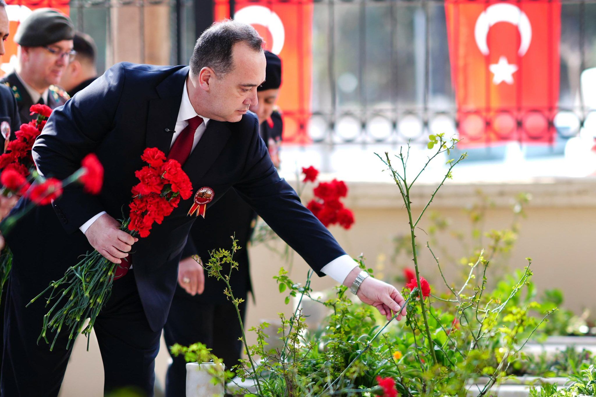 Tören, Kur’an-ı Kerim tilavetinin okunmasıyla devam etti. Ardından Garnizon Şehitliği ve Polis Şehitliğinde bulunan şehit mezarlarına karanfil bırakıldı. Ardından Çanakkale Şehitler Anıtı ziyaret edildi. 111 yıl önce vatan topraklarını koruyan kahraman atalarımızın hatırası bir kez daha yüreklerde hissedildi.