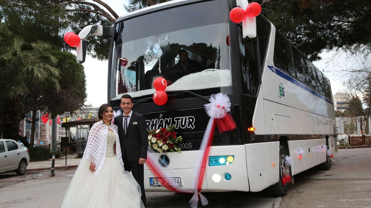 Manisa'da servis şoförlüğü yapan Özlem Kapan (30), düğün gününde süslediği otobüsün şoförlüğünü yaptı. Kendisi gibi servis şoförlüğü yapan Burhan Şen (35) ile hayatını birleştiren Kapan, mutlu gününde gelinliğiyle direksiyonun başına geçerek otobüs kullandı. Özenle süslenen otobüsle Yunusemre Belediyesi Nikah Salonu'na giden Kapan ve Şen çifti, kıyılan nikahın ardından şehir turu attı. Gelin, kornaya basarak vatandaşları selamlarken muavin koltuğundaki damat el sallayarak eşlik etti. "Farklılık olsun" Kapan, yaptığı açıklamada, iki yıldır kent merkezinden Manisa Organize Sanayi Bölgesine personel taşıdığını söyledi. Servis şoförlüğünü isteyen her kadının yapabileceğini belirten Kapan, "Eşimle 3 yıl önce tanıştık. Eşim sayesinde bu mesleği seçtim. İsteyen kadın bu mesleği yapabilir. Bugün en mutlu günüm. Evlendiğim gün bile otobüs kullanıyorum. Mutluyuz." şeklinde konuştu. On yıldır servis şoförlüğü yaptığını belirten Şen ise eşinin servis şoförlüğü yapmasında bir sakınca görmediğini ve ona her konuda destek olduğunu söyledi. Evlendikleri mutlu günde farklı bir şey yapmak istediklerini belirten Şen, "Biz mutlu günümüzde farklı birşey yapalım istedik. Genelde hep gelin arabası süslerler, biz ise gelin otobüsü yapalım istedik. Otobüsü de kaptanımız eşim Özlem'in kullanmasına karar verdik." dedi.