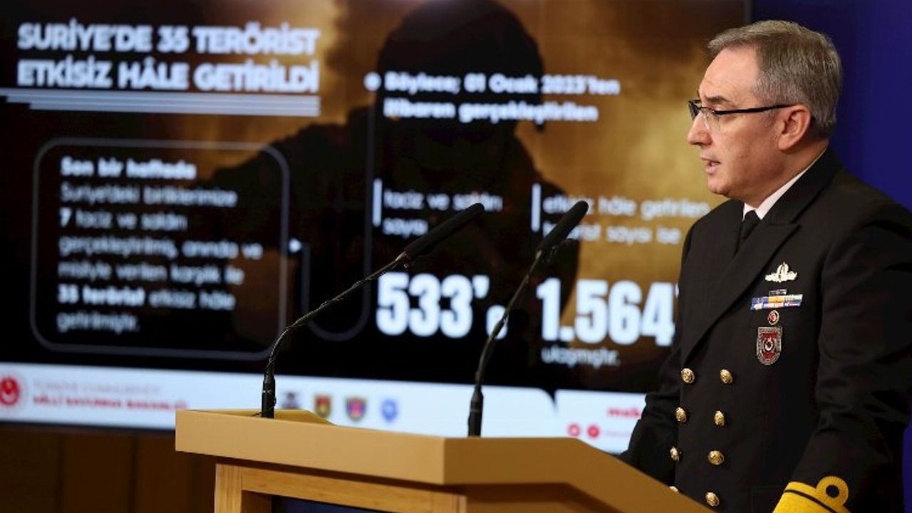 Suriye’de, harekât alanlarımızda oluşturulan güvenlik ve huzur ortamını bozmaya yönelik taciz ve saldırı girişimlerinin devam ettiğine dikkati çekilirken, "Nitekim son bir haftada 7 taciz ve saldırı gerçekleştirilmiş, anında ve misliyle verilen karşılık ile 35 terörist etkisiz hâle getirilmiştir. Böylece; 1 Ocak 2023’ten itibaren gerçekleştirilen taciz ve saldırı sayısı 533’e, etkisiz hâle getirilen terörist sayısı ise 1.564’e ulaşmıştır" denildi.