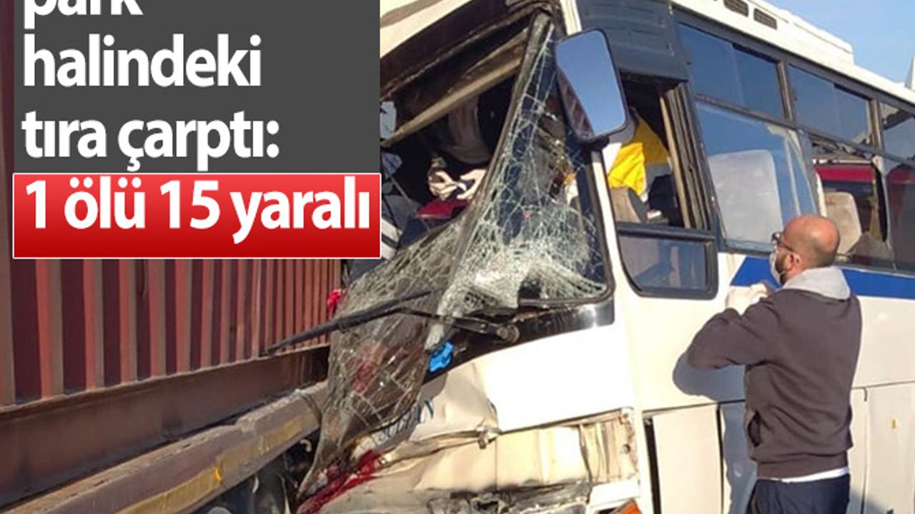 Manisa Organize Sanayi Bölgesindeki bir işçi servisinin park halindeki tır dorsesine çarpması sonucu 1 kişi ölürken 15 kişi de yaralandı.