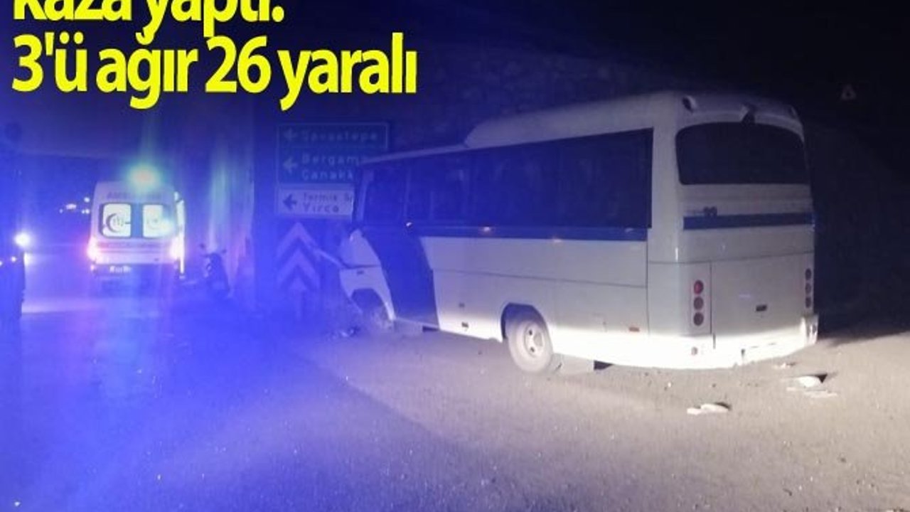 Manisa'nın Soma ilçesinde meydana gelen trafik kazasında işçi servisi ve kamyonun çarpışması sonucu 3'ü ağır 26 kişi yaralandı.