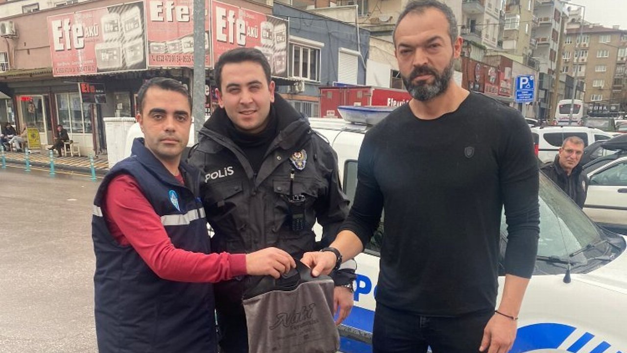 Çantasını görevlilerden teslim alan Manisalı esnaf, duyarlılığı nedeniyle MANULAŞ görevlisine ve emniyet yetkililerine teşekkür etti.