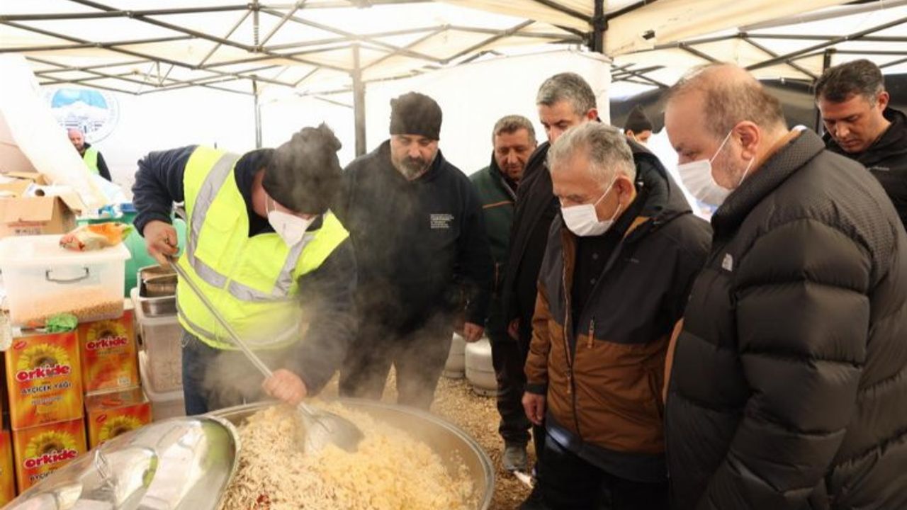 Başkan Büyükkılıç, Pınarbaşı ve Akkışla belediye başkanlarıyla birlikte Büyükşehir Belediyesi tarafından deprem bölgesinde kurulan mobil mutfakta hazırlanan yemekleri hem personele hem de depremzedelere dağıtmayı da ihmal etmedi.
