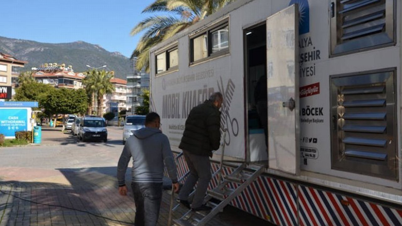 Antalya Büyükşehir Belediyesi deprem bölgesinden Alanya’ya gelen vatandaşlara kuaförlük hizmeti veriyor.ANTALYA (İGFA) - Antalya Büyükşehir Belediyesi, Kahramanmaraş merkezli iki depremin ardından Antalya ve ilçelerine gelen depremzedelere destek olmaya, tüm imkanlarını seferber etmeye devam ediyor. Antalya Büyükşehir Belediyesi Mobil Kuaförü, kuaförlük ihtiyacını karşılamak için Alanya’ya gitti. Mobil Kuaför, Alanya’da otellerde, yurtlarda, misafirhanelerde kalan depremzedelere ücretsiz olarak hizmet veriyor. Alanya Obagöl mevkiine park eden Mobil Kuaför, kadın, erkek, çocuk tüm depremzedelere saç ve sakal kesimi yaptı. İki gün ilçede kalacak olan Mobil Kuaför talep olması halinde süreyi uzatacak.