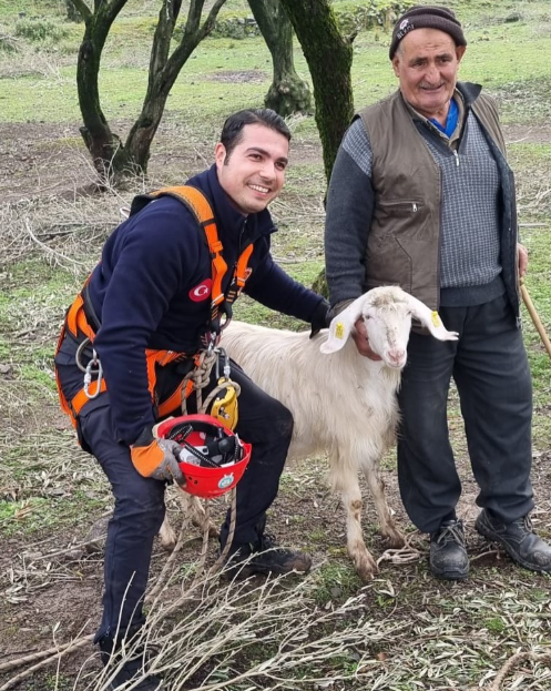 Zorlu arazi koşullarına rağmen dikkatli bir çalışma yürüten ekipler, keçiyi bulunduğu yerden güvenli şekilde kurtardı. Sağlık durumu iyi olduğu belirlenen hayvan, gerekli kontrollerin ardından sahibine teslim edildi.
